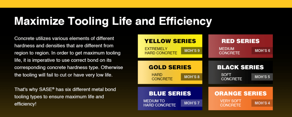 SASE 3″ Metal Bond Pucks come in three bond options for soft to hard concrete, making them versatile for any surface. Available with SASE Quick Change System (QCS) or customizable for any tool holder plate, these pucks are perfect for both dry and wet grinding applications, delivering superior performance across various concrete conditions.