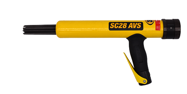 SC28 AVS Needle Scaler Needle Scaler Home»Grind and Polish Equipment»Needle Scalers»SC28 AVS Needle Scaler Item Number SAS.SC28ACS Overview: Needle Scaler for Cleaning or Resurfacing Metal or Concrete Surfaces The Anti-Vibration System (AVS) Reduces Operator Fatigue During Longer Use Various Needle Sizes and Configurations Available Request a Quote Schedule a demo Service Manual Product Brochure Technical Data: Tool Weight: 7.5 lbs (3.4 kg) Required Power: Pneumatic (Compressed Air) PSI: 75-100 CFM: 2.3 Needle Sizes: 4 mm/3mm/2mm Dimensions (L x W x H): 13 x 7 x 2.5 in (330 x 178 x 64 mm)